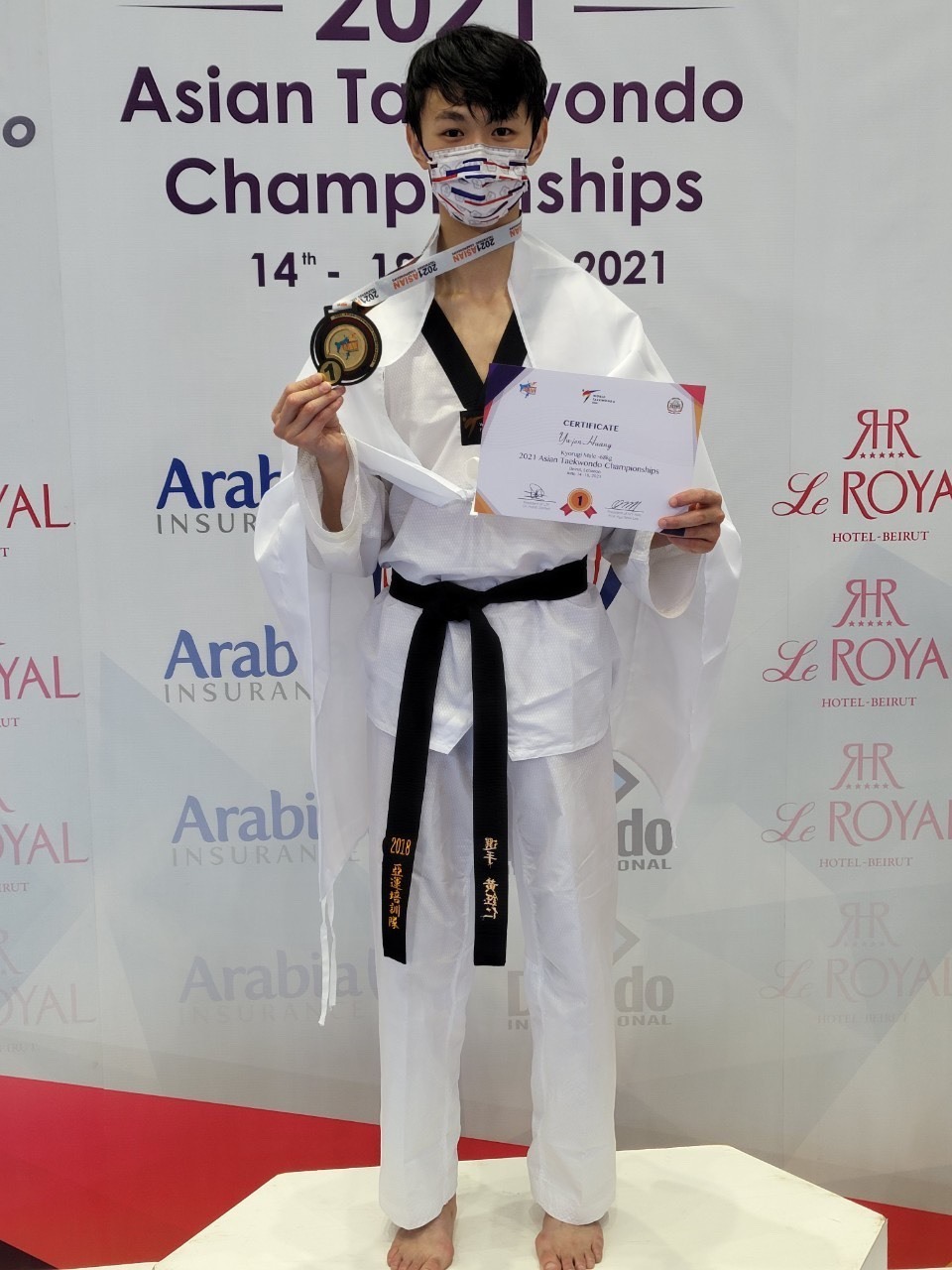 本校3位跆拳道菁英選手,屢獲選國家運動代表隊,於各大國際賽連連斬獲獎項。黃鈺仁同學為東京奧運中華隊國家代表隊選手,上屆亞洲跆拳道錦標賽成績獲銅牌,這次以王者之姿歸來,誓言復仇摘金,一路過關斬將,拿下金牌;同為東奧國手的蘇柏亞同學因亞錦賽摘金將牽動在奧運的籤位,整體戰略考量下,忍痛放棄參加決賽,於本次比賽中取得銀牌;馬婷霞同學為國際賽事的常勝軍,拿坡里世大運女子團體金牌戰中,關鍵的一記中段踢擊,擊敗韓國隊奪得金牌,這次亞錦賽則拿下銅牌。本校跆拳道運動代表隊的非凡成就,實為本校之光,更是台灣之光,期許他們於未來的賽事中再創佳績!(運動學系)