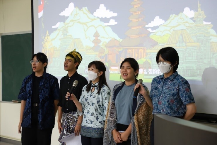 當日印尼學生們穿著印尼傳統服飾,展示聯合國教科文組織列為世界非物質文化遺產的蠟染布「BATIK」,使現場洋溢著濃厚的異國風情。為讓與會者體驗印尼語言及文化,印尼學生以合唱印尼國歌開場,會中並進行簡單的印尼語教學,邀請與會者上台現學現賣自我介紹,同時透過有獎問答及互動,加深與會者對印尼文化的印象,現場氣氛熱絡有趣。